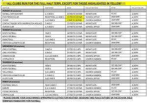 *Please ensure your child brings appropriate clothes for weather. Sessions take place outside on the school field.